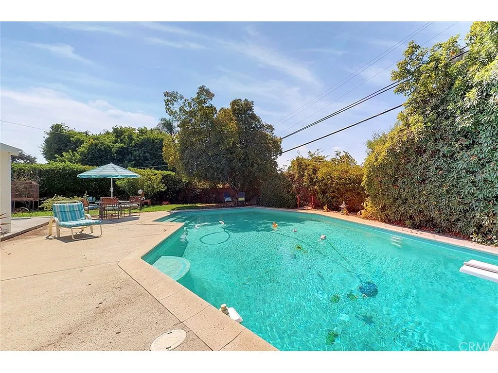 The large backyard is your own private retreat—complete with a sparkling pool, mature landscaping, and ample space for outdoor gatherings. Whether hosting summer parties or enjoying quiet evenings at home, this yard is designed for year-round enjoyment.